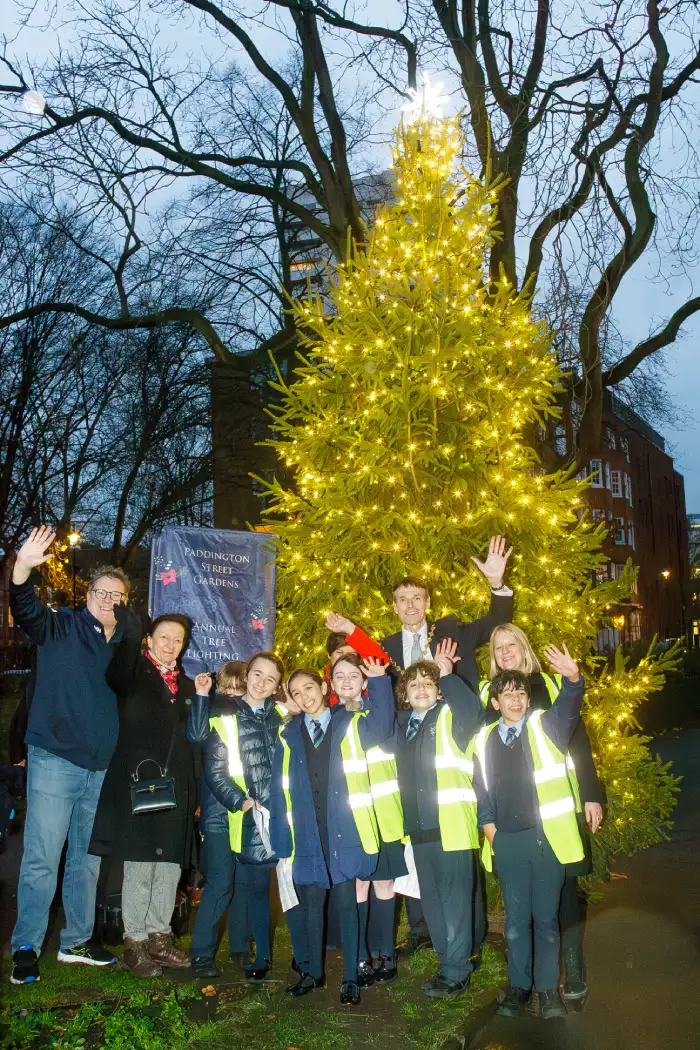 Concord London was proud to host a festive evening in Paddington Street Gardens, bringing the local community together in celebration. The Lord Mayor of Westminster joined the event, enjoying performances by St Vincent’s Choir and a lively brass band that filled the gardens with seasonal cheer.